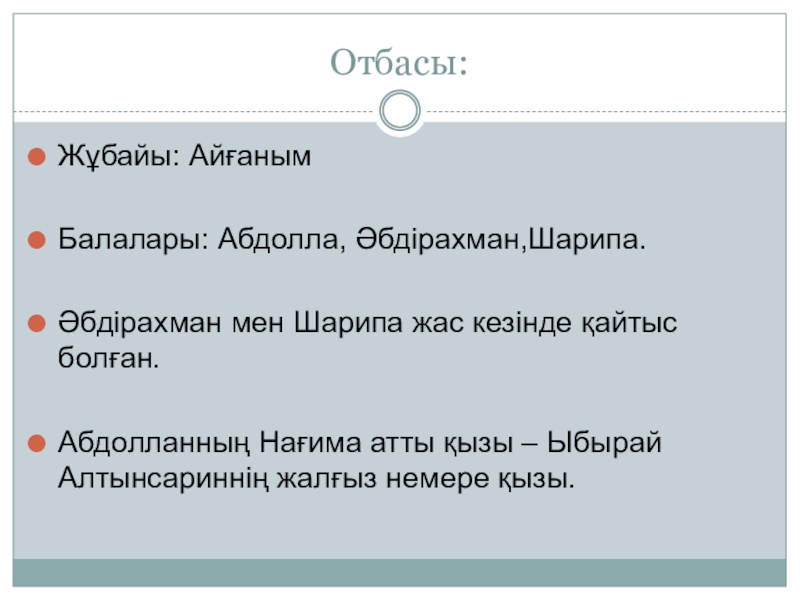 атты қызы – Ыбырай Алтынсариннің жалғыз немере қызы.