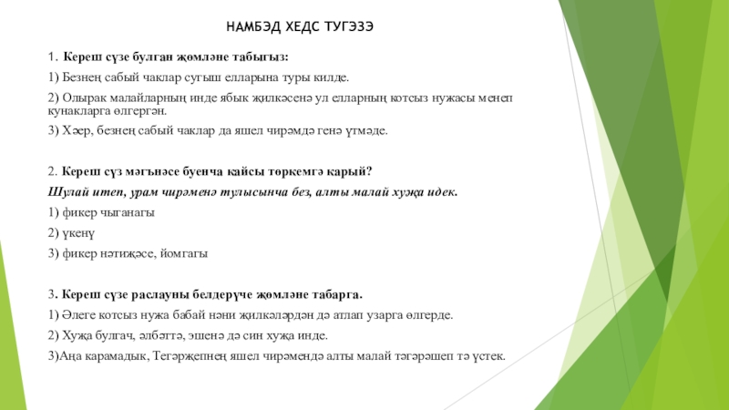 3. Кереш сүзе раслауны белдерүче җөмләне табарга.
