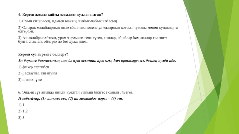 Слайд 54. Кереш җөмлә кайсы җөмләдә кулланылган?