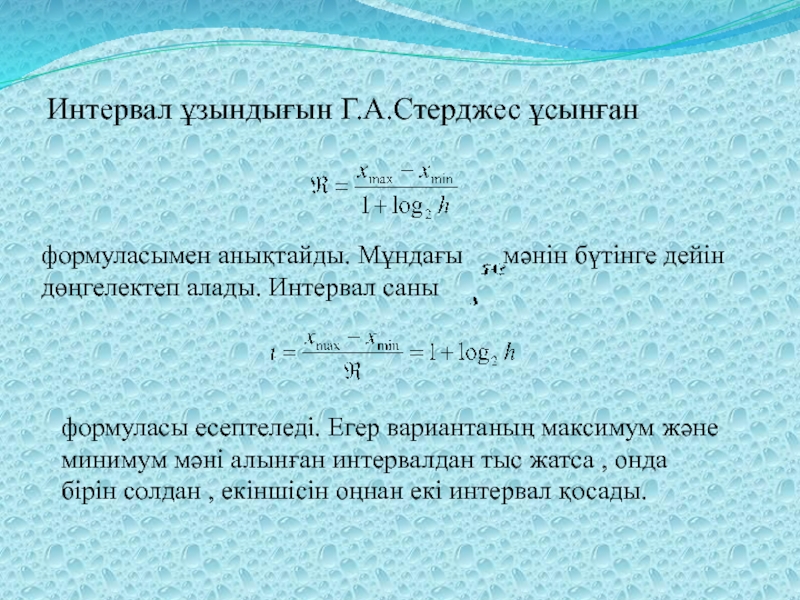 формуласы есептеледі. Егер вариантаның максимум және минимум мәні алынған интервалдан тыс жатса , онда бірін солдан , екіншісін оңнан екі интервал қосады.