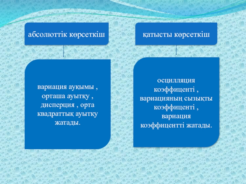 осцилляция коэффиценті , вариацияның сызықты коэффиценті , вариация коэффицентті жатады.