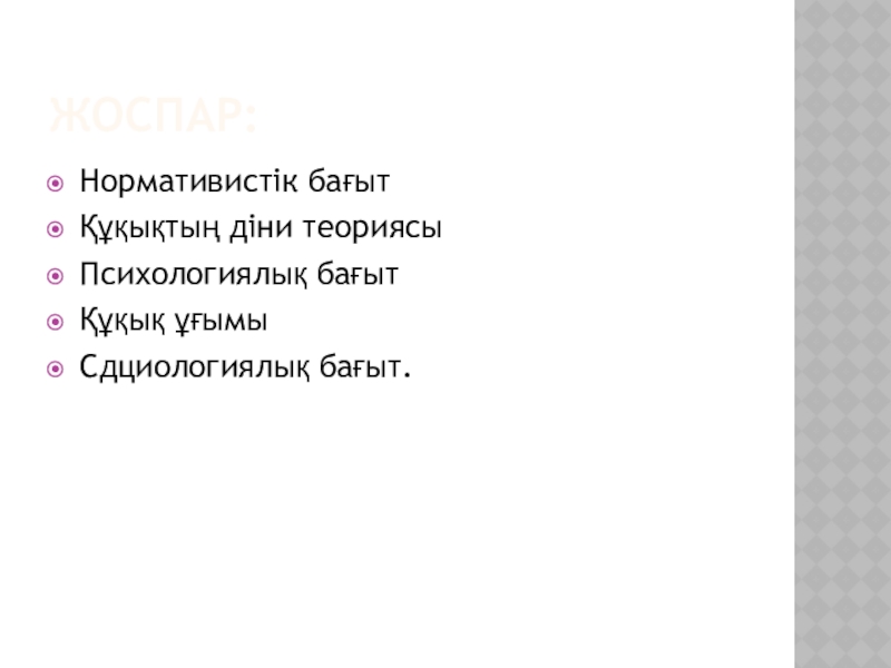 Жоспар:Нормативистік бағытҚұқықтың діни теориясыПсихологиялық бағытҚұқық ұғымыСдциологиялық бағыт.