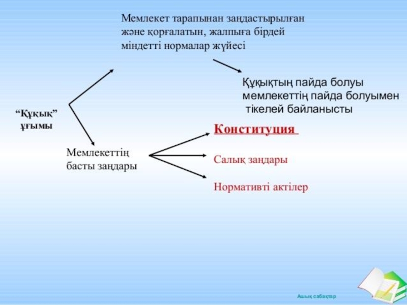 Презентация, доклад на тему Құқықты түсінудегі қазіргі кезгі бағыттар