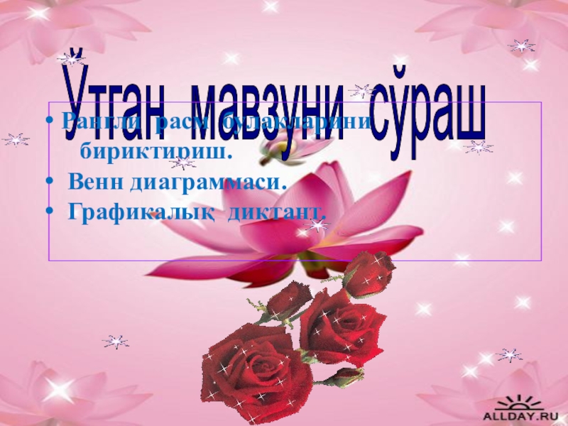 Это сайт презентаций, где можно хранить и обмениваться своими презентациями, докладами, проектами, шаблонами в формате PowerPoint с другими пользователями. Мы помогаем школьникам, студентам, учителям, преподавателям хранить и обмениваться учебными материалами.