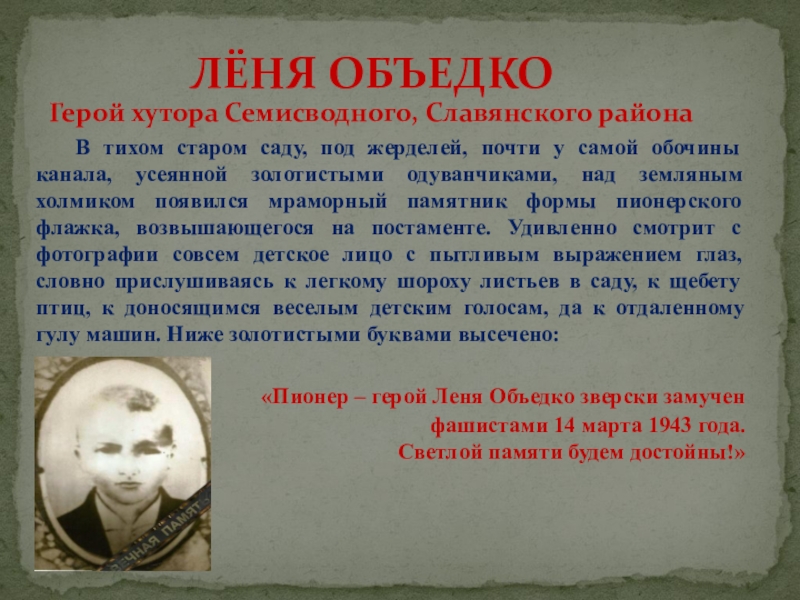 Герой хутора Семисводного, Славянского района