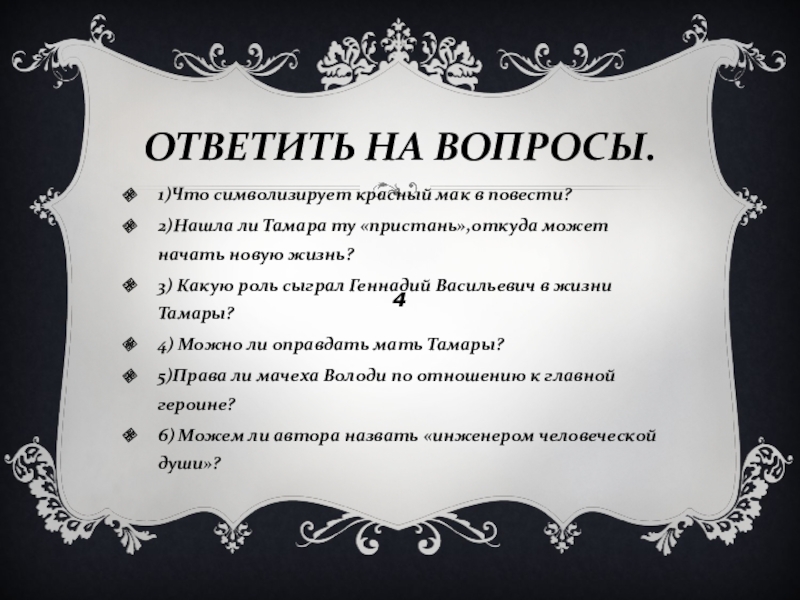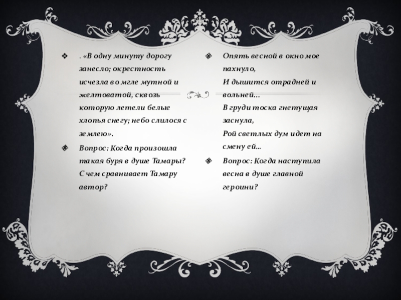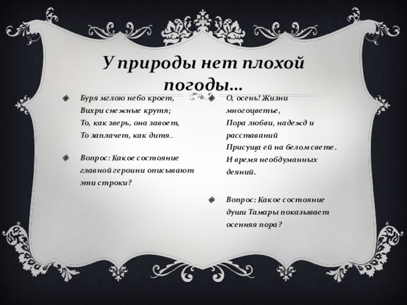 Вопрос: Какое состояние души Тамары показывает осенняя пора?