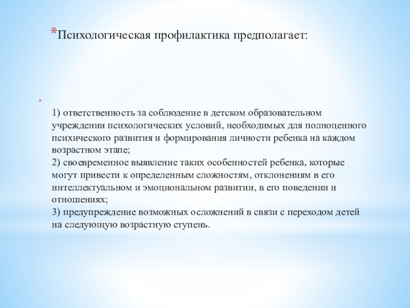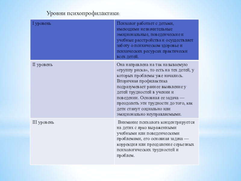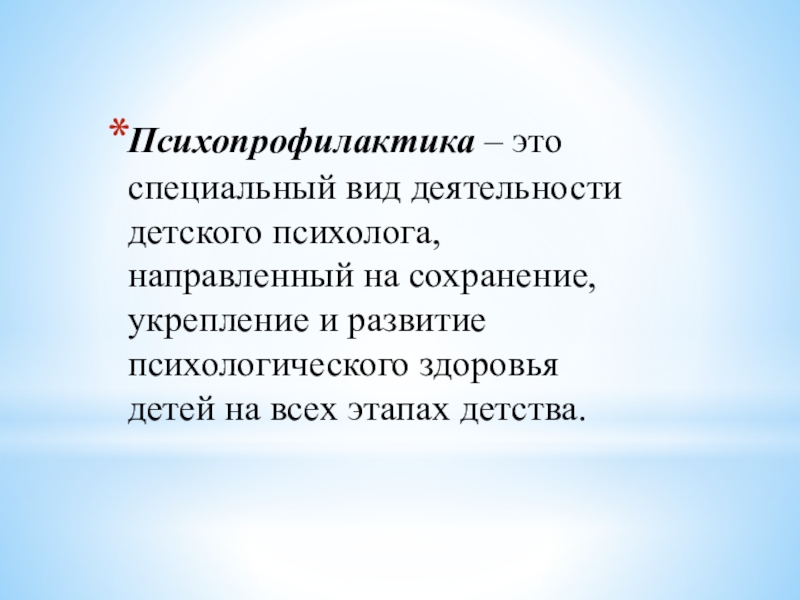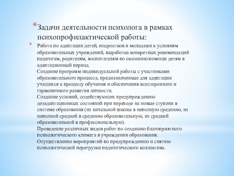 Задачи деятельности психолога в рамках психопрофилактической работы: