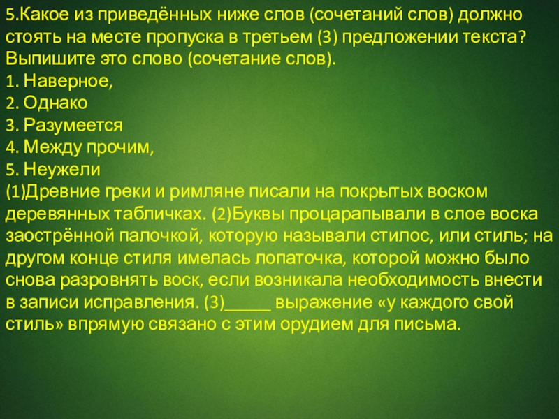Слайд 155.Какое из приведённых ниже слов (сочетаний слов) должно стоять на месте