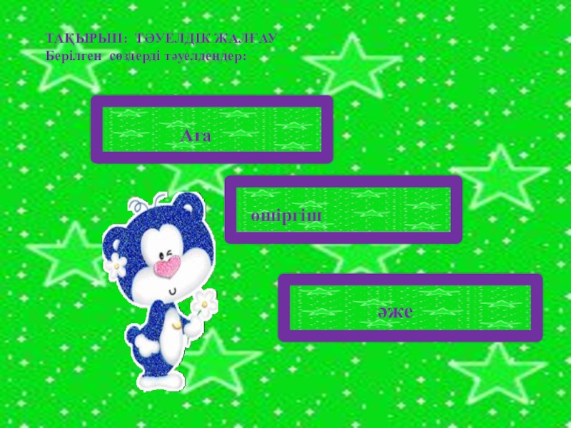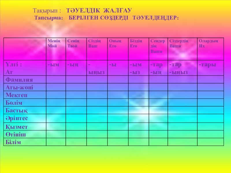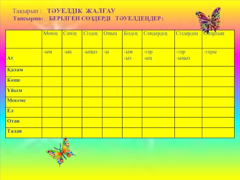 Тақырып :  ТӘУЕЛДІК ЖАЛҒАУ Тапсырма:  БЕРІЛГЕН СӨЗДЕРДІ  ТӘУЕЛДЕҢДЕР: