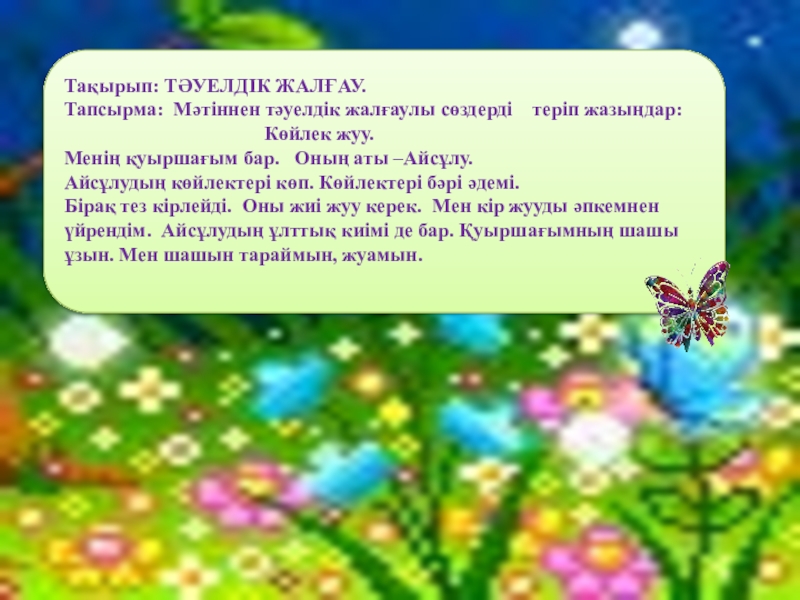 Тапсырма: БЕРІЛГЕН СӨЗДЕРДІ ТӘУЕЛДЕҢДЕР: