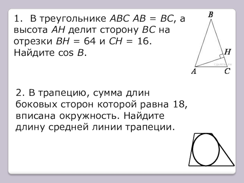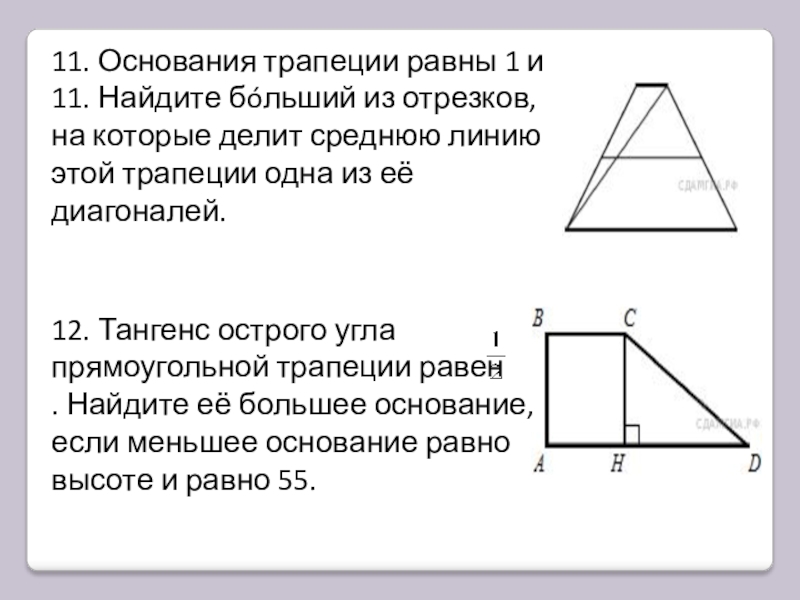 12. Тангенс острого угла прямоугольной трапеции равен . Найдите её большее основание,