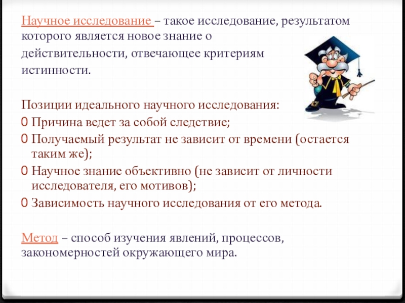 Слайд 2Научное исследование – такое исследование, результатом которого является новое знание о