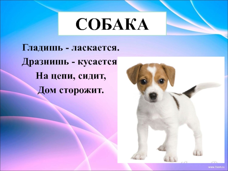 СОБАКАГладишь - ласкается.Дразнишь - кусается.На цепи, сидит,Дом сторожит.
