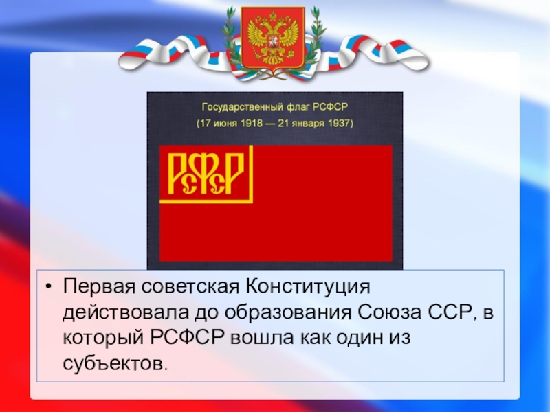 В апреле 1991 г. Правительственная комиссия Совета Министров РСФСР одобрила возвращение трехцветного флага республики