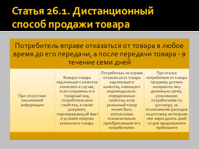 Слайд 4Статья 26.1. Дистанционный способ продажи товара