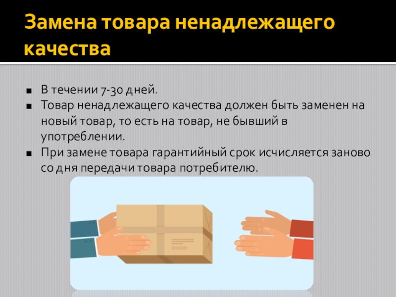 Слайд 7Замена товара ненадлежащего качества