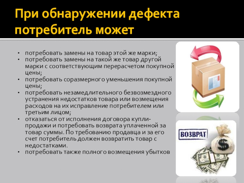 Слайд 6При обнаружении дефекта потребитель может