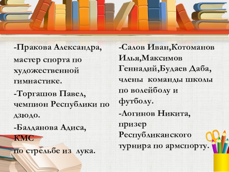-Салов Иван,Котоманов Илья,Максимов Геннадий,Будаев Даба, члены команды школы по волейболу и футболу.
