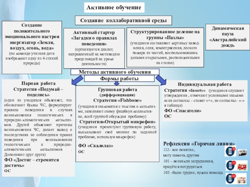 учащиеся составляют правила поведения в случае возникновения геологических и природно-климатических катаклизмов
