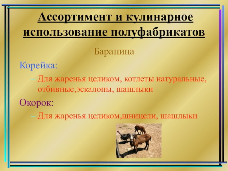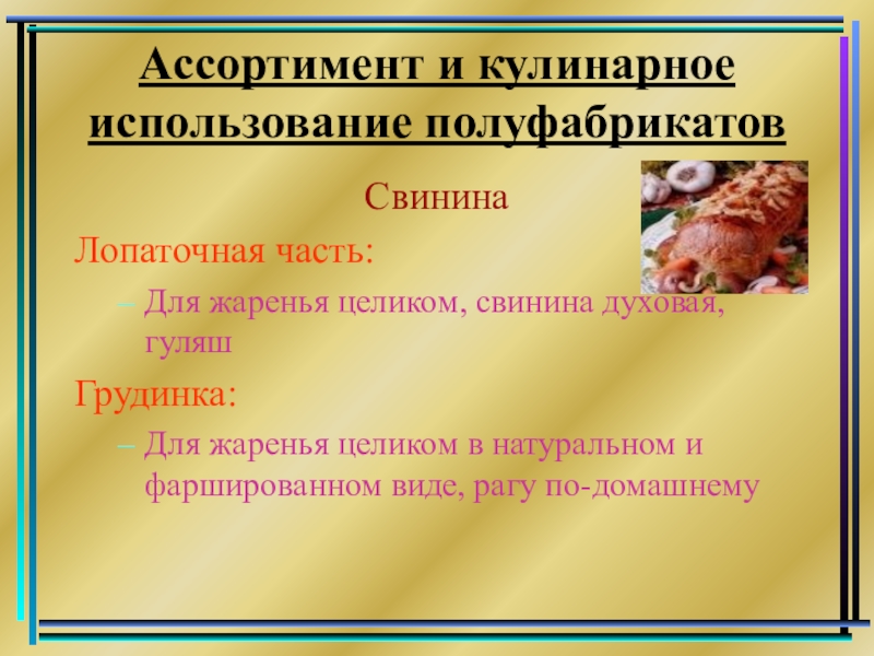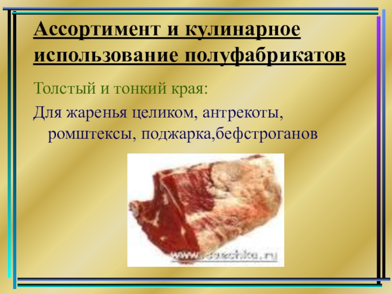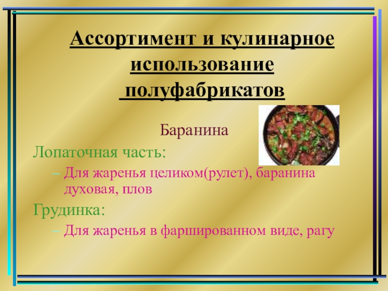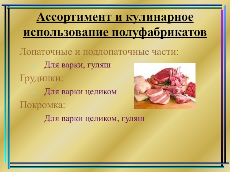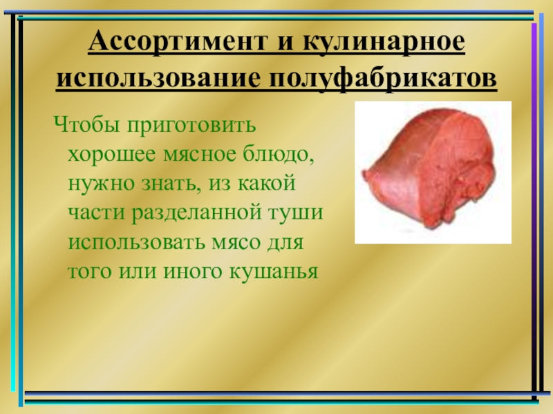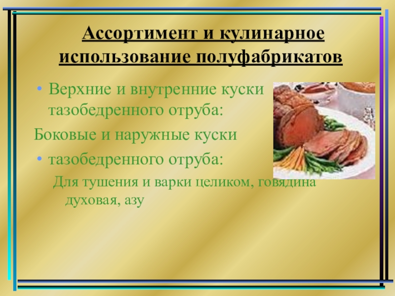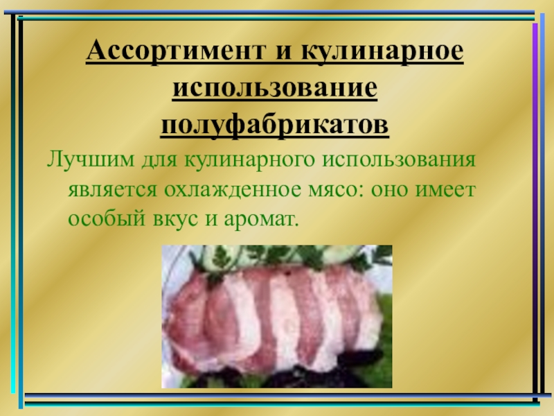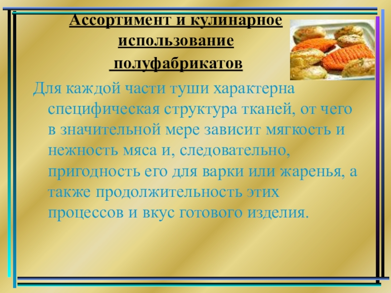 Слайд 51Ассортимент и кулинарное использование полуфабрикатов