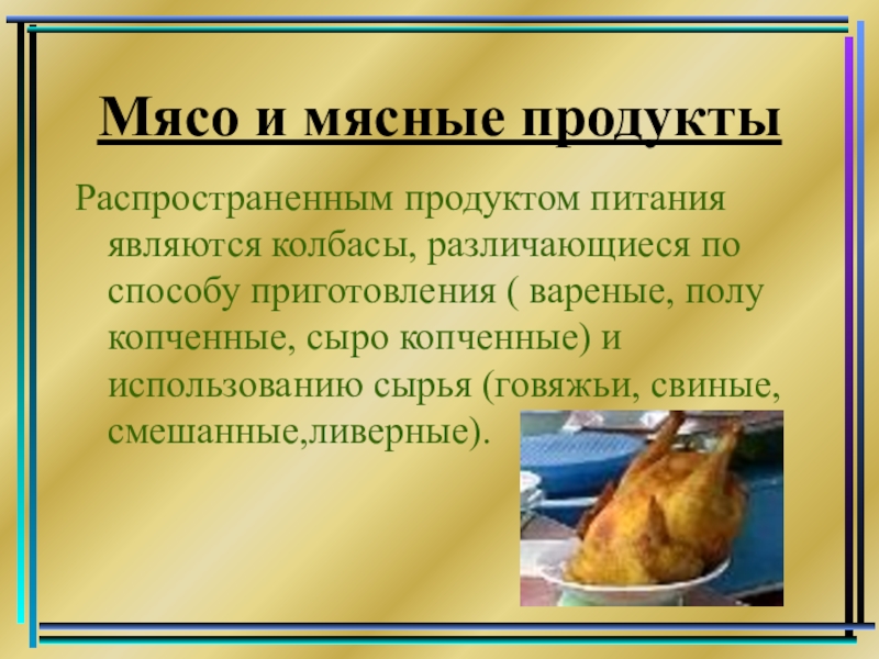Распространенным продуктом питания являются колбасы, различающиеся по способу