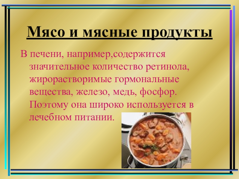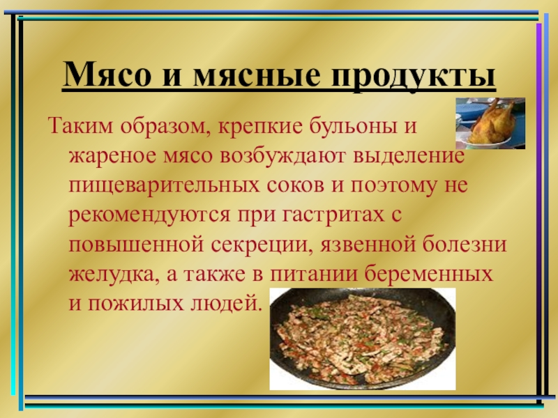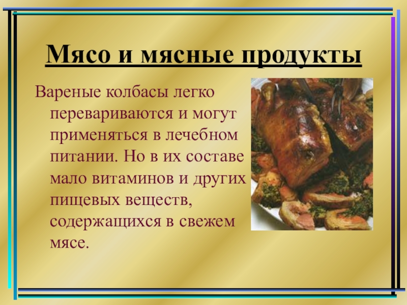 лечебном питании. Но в их составе мало витаминов и других пищевых веществ,содержащихся в свежем мясе.