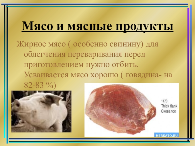 перед приготовлением нужно отбить. Усваивается мясо хорошо ( говядина- на 82-83 %)
