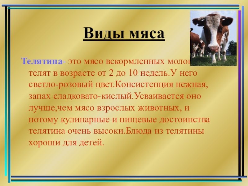 Телятина- это мясо вскормленных молоком телят в возрасте от 2