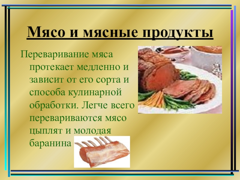 сорта и способа кулинарной обработки. Легче всего перевариваются мясо цыплят и молодая баранина
