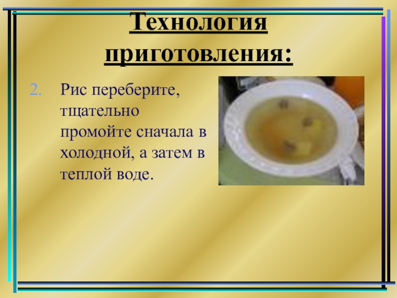 Рис переберите, тщательно промойте сначала в холодной, а затем в