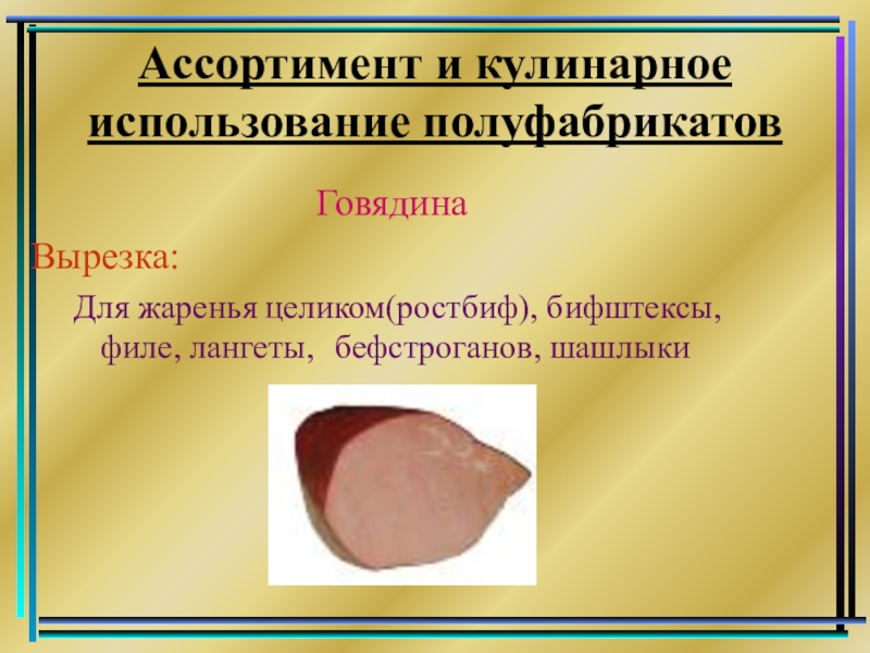 Слайд 53Ассортимент и кулинарное использование полуфабрикатов
