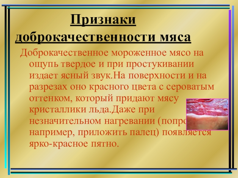 Доброкачественное мороженное мясо на ощупь твердое и при простукивании
