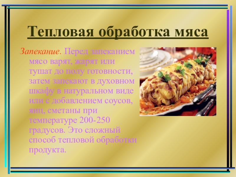 Запекание. Перед запеканием мясо варят, жарят или тушат до