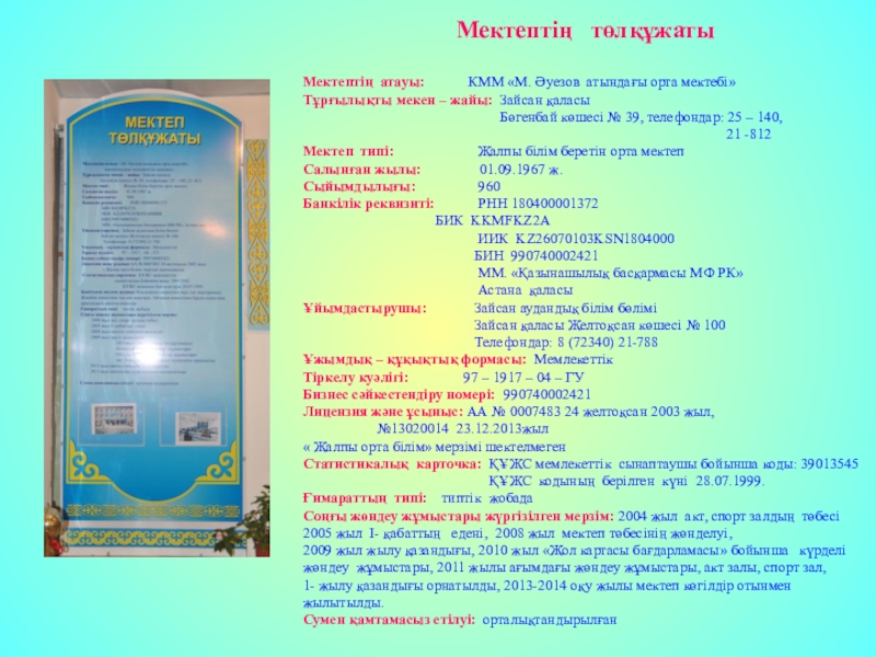 КММ “М.ӘУЕЗОВ АТЫНДАҒЫ ОРТА МЕКТЕБІ”