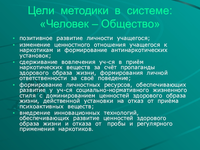 Слайд 9Цели методики в системе: «Человек – Общество»