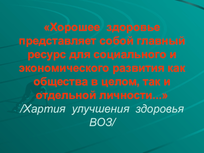 Слайд 15«Хорошее здоровье представляет собой главный ресурс для социального и экономического развития