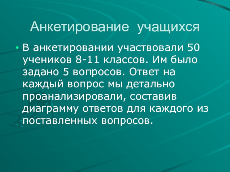 В анкетировании участвовали 50 учеников 8-11 классов. Им было задано