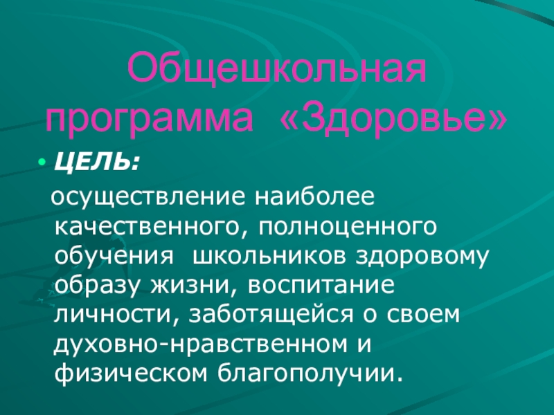 осуществление наиболее качественного, полноценного обучения школьников здоровому
