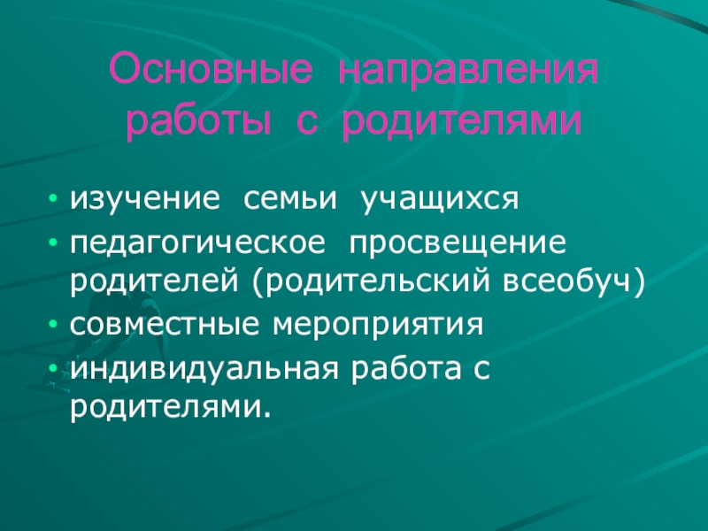 - проведение родительских собраний (организационных, тематических, диспутов, практикумов, итоговых – «Психолого-педагогическая характеристика подростка: основные особенности», «Подросток в мире вредных привычек», «Роль семьи в формировании позитивной самооценки школьника», «Подготовка к экзаменам: как противостоять стрессу» и др.);