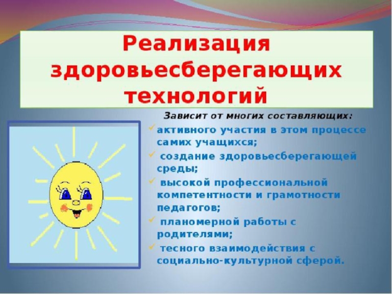 факторов образовательной среды, направленных на сохранение здоровья ребёнка на всех этапах его обучения и развития.