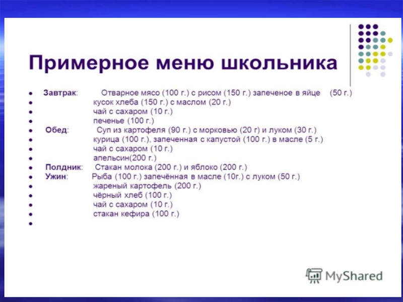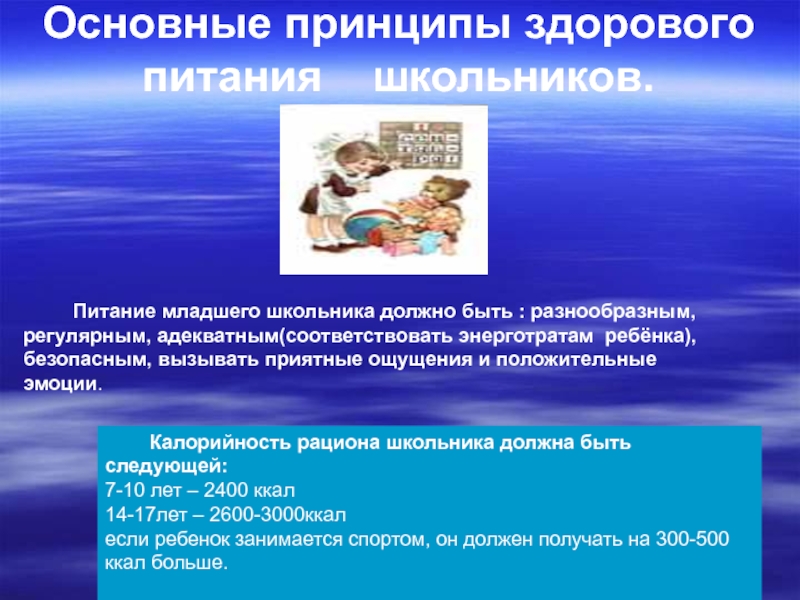 Калорийность рациона школьника должна быть следующей: