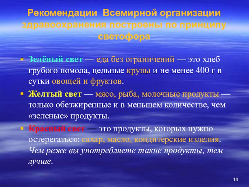 Рекомендации Всемирной организации здравоохранения построены по принципу светофора