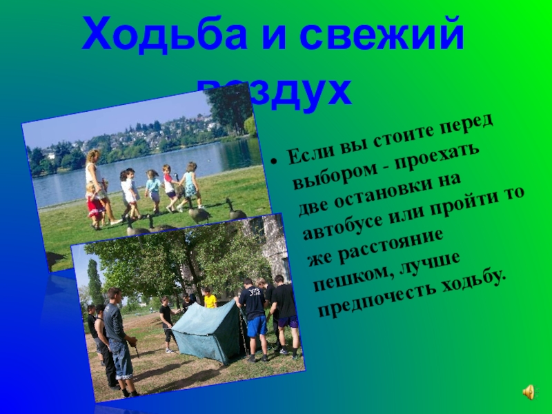 остановки на автобусе или пройти то же расстояние пешком, лучше предпочесть ходьбу.