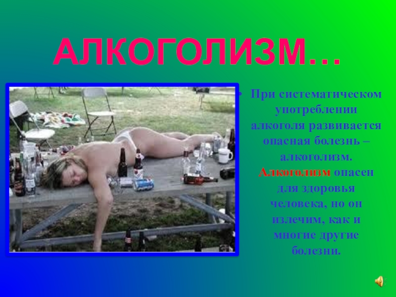 При систематическом употреблении алкоголя развивается опасная болезнь – алкоголизм. Алкоголизм опасен