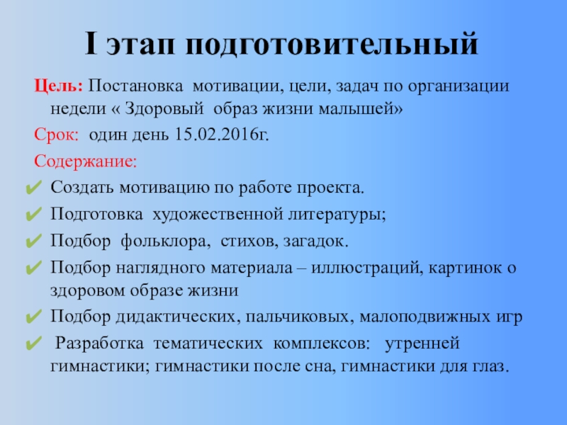 Цель: Постановка мотивации, цели, задач по организации недели «