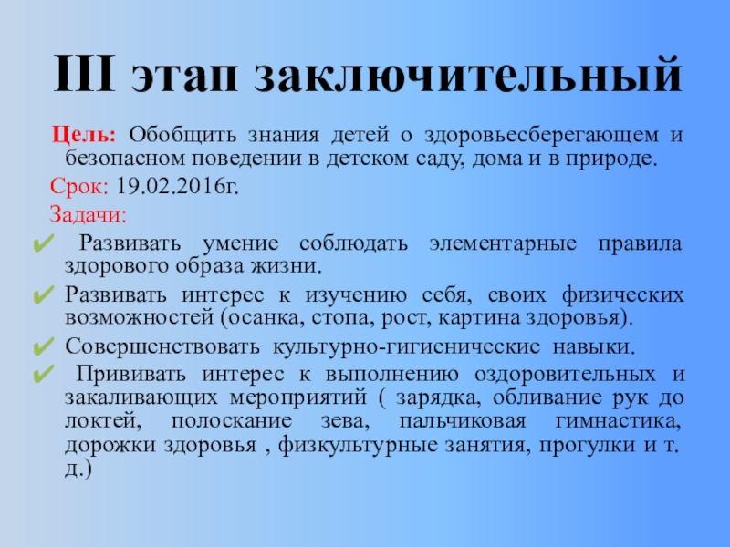 Цель: Обобщить знания детей о здоровьесберегающем и безопасном