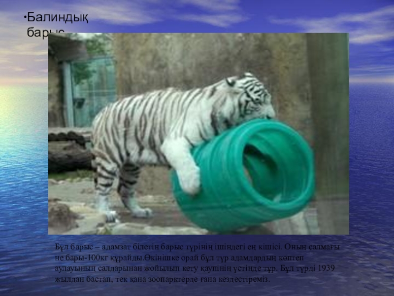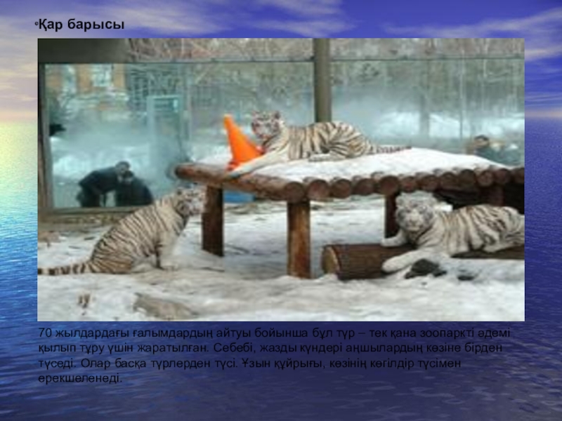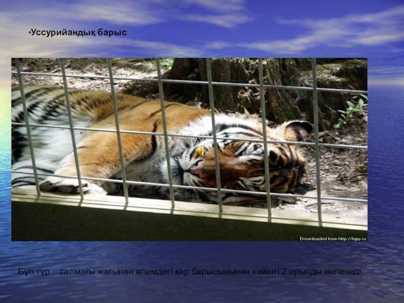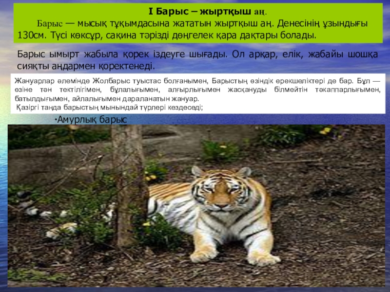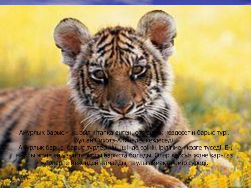 Слайд 7Амурлық барыс - қызыл кітапқа енген, өте сирек кездесетін барыс түрі.