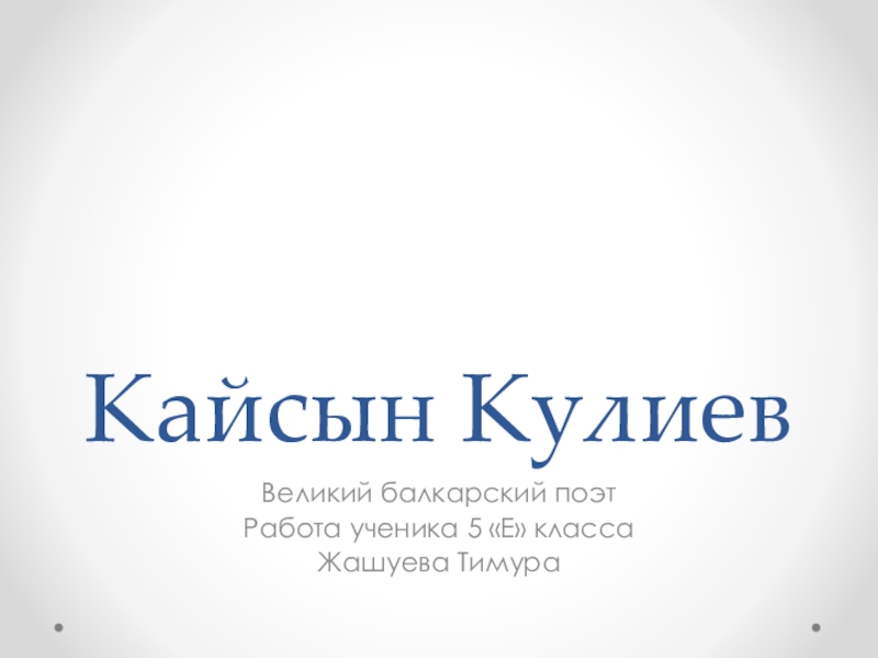 Кайсын КулиевВеликий балкарский поэтРабота ученика 5 «Е» классаЖашуева Тимура