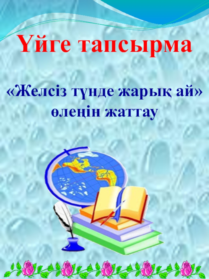 Үйге тапсырма«Желсіз түнде жарық ай» өлеңін жаттау
