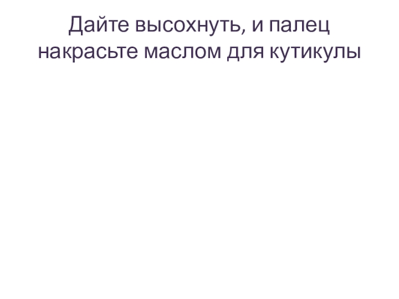 Слайд 5Дайте высохнуть, и палец накрасьте маслом для кутикулы
